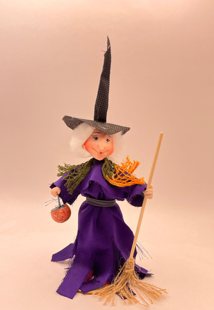 La Brujita artesanal Bruma es muy delicada y misteriosa, de esas que parecen desvanecerse entre la niebla al amanecer. Con su vestido en tonos profundos y detalles llenos de textura, transmite una magia tranquila, casi invisible, pero siempre presente.
