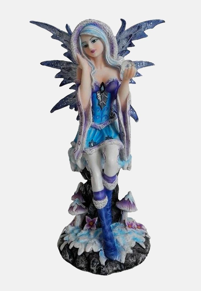 Cada centímetro de esta figura ha sido meticulosamente diseñado para capturar la esencia misma de la magia invernal y la suerte. La hada, sentada sobre un árbol nevado, sostiene con gracia una bola de cristal mágica que simboliza la conexión con el mundo espiritual y la fortuna. El diseño del árbol nevado y los detalles en la bola de cristal crean una escena encantadora que deleitará tus sentidos.