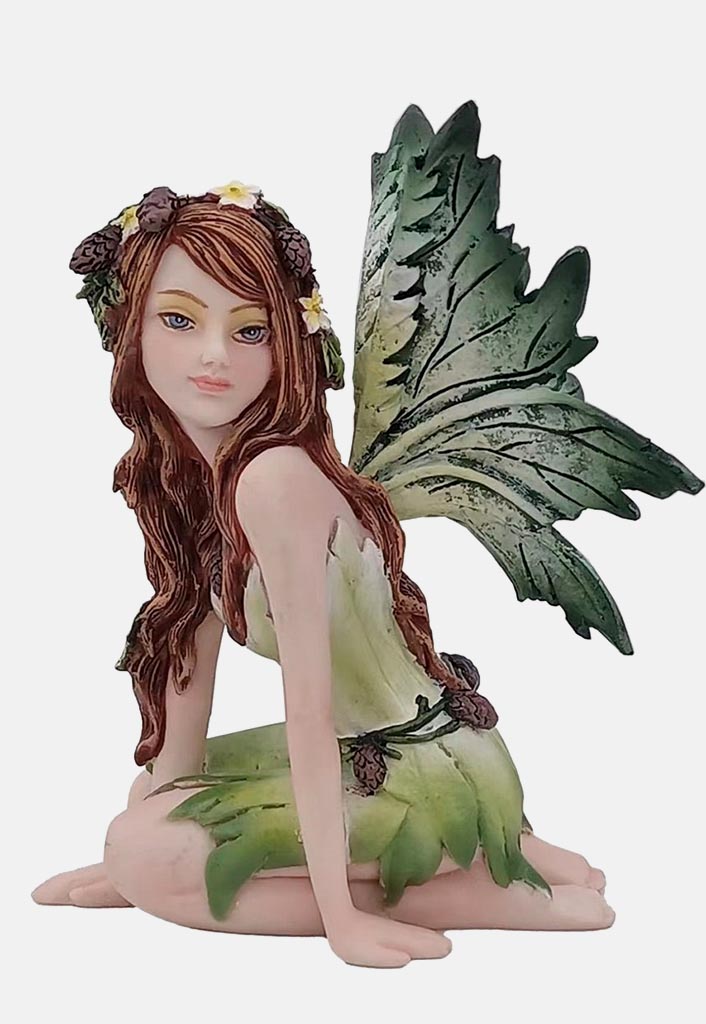 Descripción: Déjate cautivar por la belleza etérea de esta encantadora figura del Hada del Bosque Encantado. Con su largo cabello castaño que cae en suaves ondas y una corona adornada con flores y piñas, esta hada irradia una serena elegancia. Sentada con gracia, su vestido envuelve su figura en tonos verdes que se funden armoniosamente con el ambiente del bosque. Sus alas, delicadas y translúcidas, reflejan los matices de la naturaleza, tejiendo un aura de magia y misterio a su alrededor.